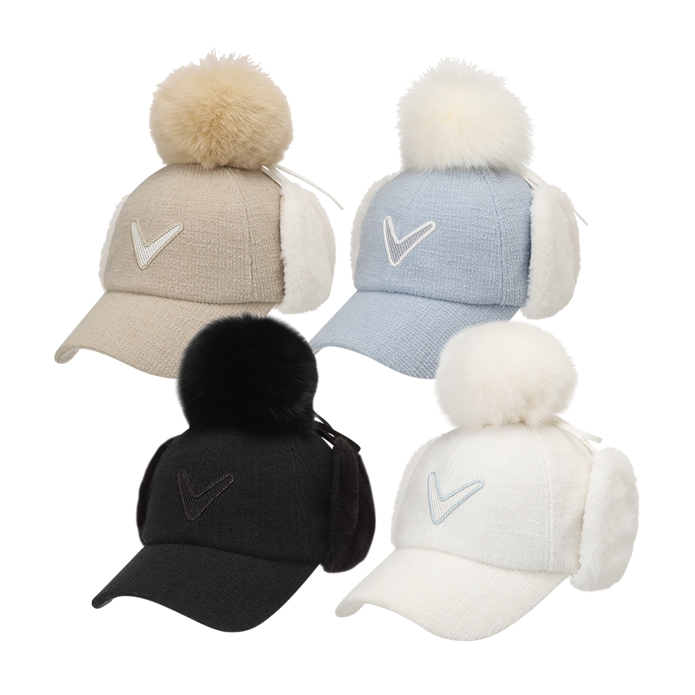 캘러웨이 우먼스 트위드 폼폼 이어워머 볼캡